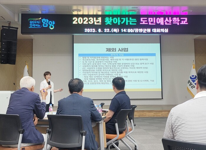 [함양=이영수 기자] 함양군은 23일 군청 대회의실에서 읍면 주민자치위원 및 주민참여예산 담당 공무원 등 30여명을 대상으로 경상남도 주관 ‘2023년 찾아가는 도민예산학교’를 개최했다.
