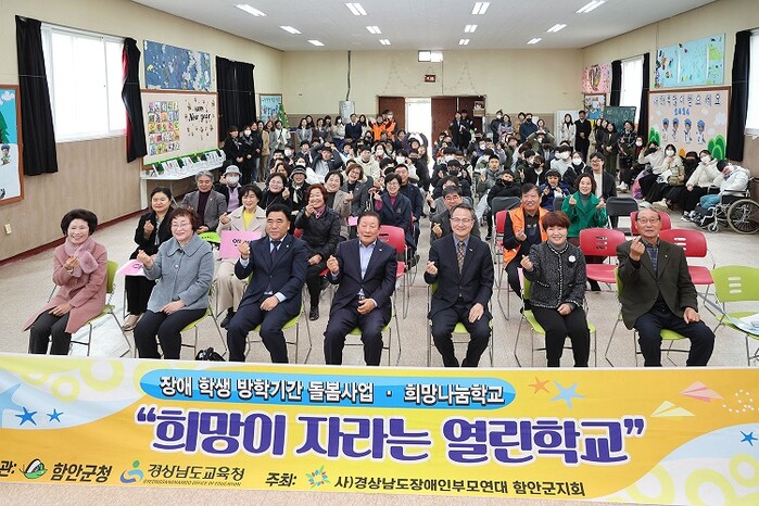 (사)경상남도장애인부모연대함안군지회(회장 허석주)가 주관한 이날 수료식에는 조근제 함안군수, 곽세훈 함안군의회 의장과 안말남 함안군의원, 김승오 함안교육지원청 교육장을 비롯한 교육청 관계자와 장애학생, 자원봉사자, 학부모 등 100여 명이 참석해 학생들의 수료를 축하했다.