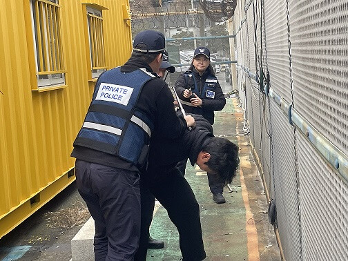 | ▲ 보안공사직원이 범죄상황 모의훈련사진 |
