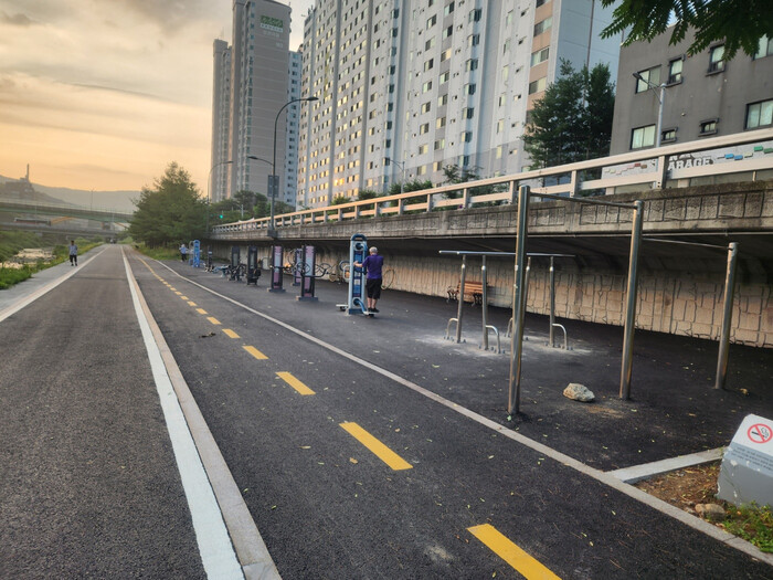| ▲ 용인특례시 수지구 손곡천·동막천 일부 구간의 보행로와 자전거도로를 재포장했다. |