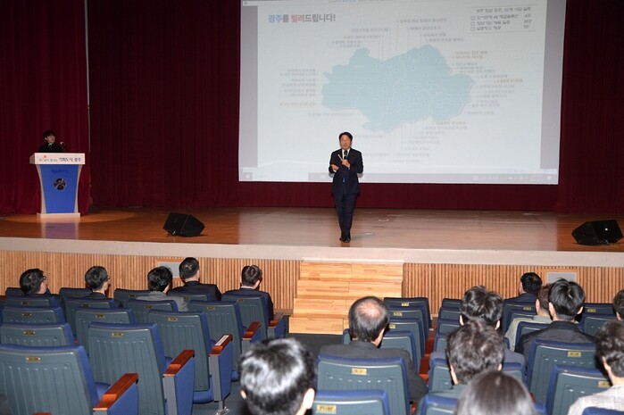 [광주=정찬남 기자] 강기정 광주광역시장은 5일 “공직자가 미래를 준비하면 동네가 바뀌고, 도시가 바뀌고, 나라가 바뀐다”며 “공직자들이 한발 앞서 미래를 준비해야 한다.”고 강조했다.