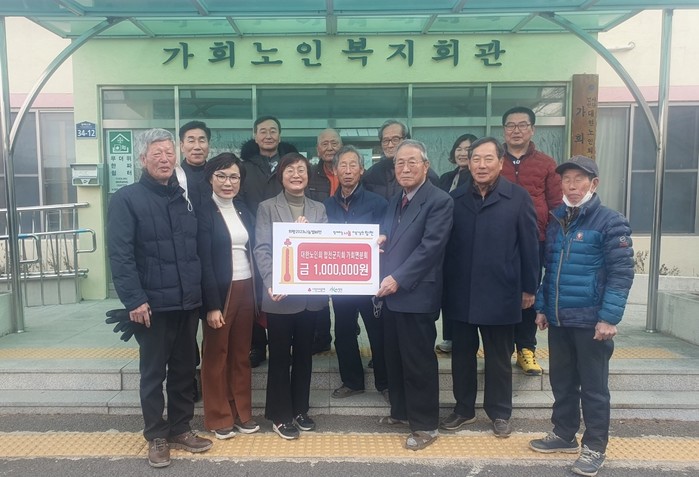 정동규 가회면 노인회장은 “새해를 맞아 소외계층에게 조금이나마 도움이 되고자 노인회 회원들이 십시일반 마련한 성금이다. 적은 금액이나마 지역에 보탬이 될 수 있어 기쁘게 생각한다”고 말했다.