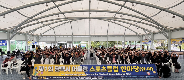 [평택=오왕석 기자] 평택시장애인체육회(회장 정장선)는 지난 16일(목) 소사벌레포츠타운에서 관내 장애학생과 캠프 험프리스 내 장애학생이 함께하는 ‘제1회 평택시 어울림 스포츠클럽 한마당’ 행사를 개최했다고 밝혔다.