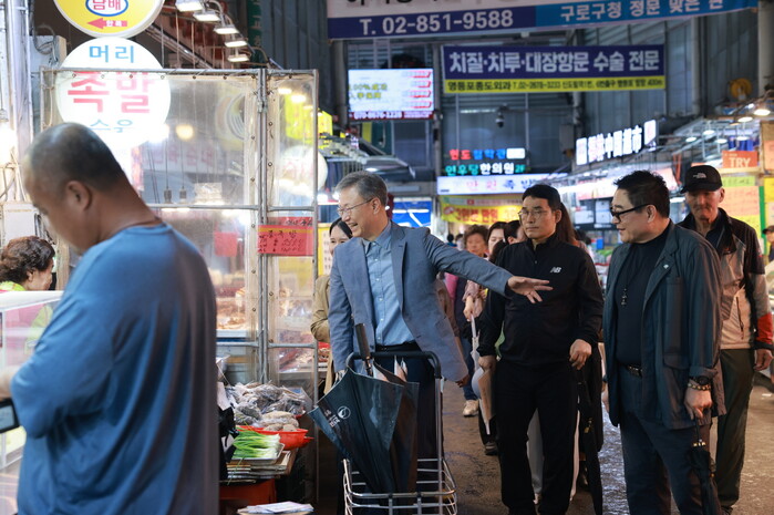 | ▲ 장인홍 구청장이 지난 24일 열린 ‘추석 맞이 장터달구미’ 행사에서 지역내 전통시장을 방문해 시장 상인과 이야기를 하고 있다. (사진=구로구청 제공) |