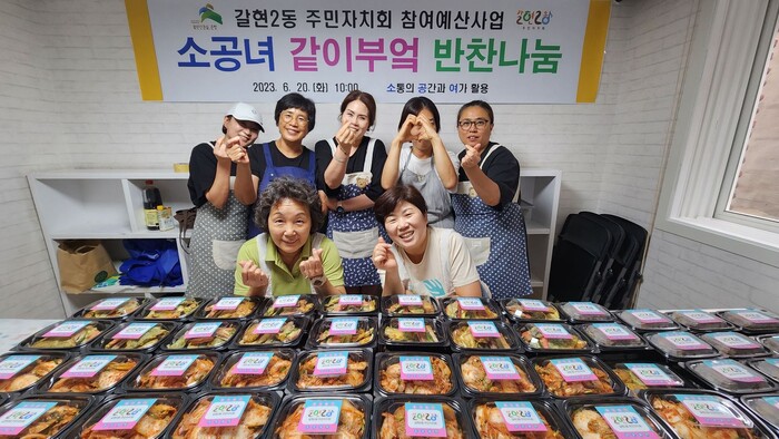 ‘소공녀 같이부엌 반찬나눔’은 주민자치회 주관으로, 이웃의 따뜻한 정을 전달하고자 불고기, 겉절이, 꼬치전, 동태전, 깻잎전 등 다섯 가지 밑반찬을 직접 만들어 나누는 행사다. 나눔 대상은 고시원 등에서 홀로 지내는 중장년 1인 가구와 홀몸 어르신 등 50가구다.