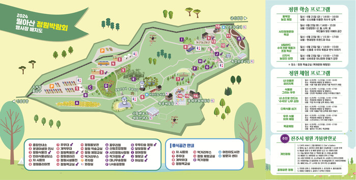 이번 정원박람회는 시민 참여 기회를 확대하고자 시민들이 직접 참여하여 조성한 시민정원사정원, 시민작가정원 등 특색 있는 정원을 즐길 수 있도록 준비하였으며, 정원을 이해하고 배울 수 있도록 하기 위해 식물로 그리는 우주, 차수국 삽목체험 등 다양한 ‘정원 체험 프로그램’을 운영한다.