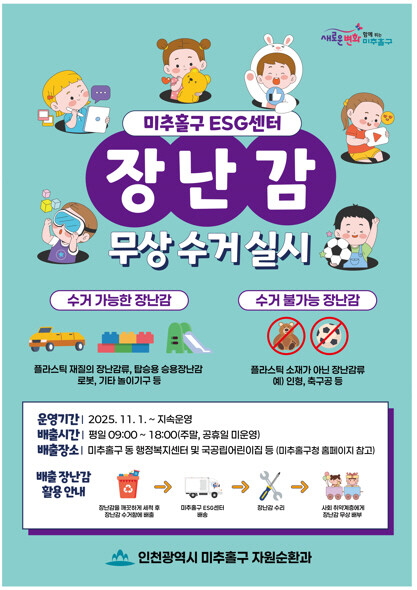 [인천=문찬식 기자] 인천 미추홀구가 오는 10일부터 ‘장난감 무상 수거함 시범운영 사업’을 본격 추진한다.