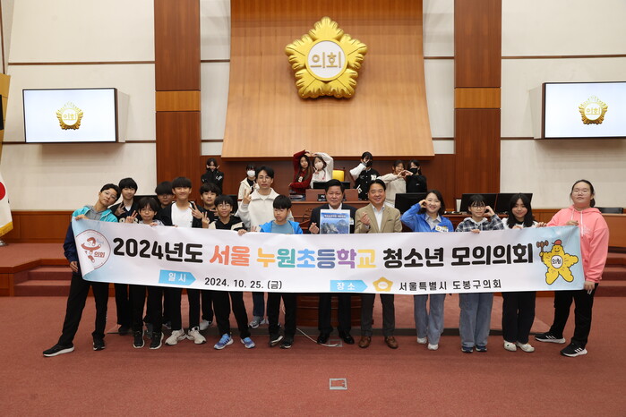 [시민일보 = 문민호 기자] 서울 도봉구의회(의장 안병건)가 최근 3층 본회의장에서 서울누원초등학교 6학년 학생 18명을 대상으로 청소년 모의의회 체험 프로그램을 진행했다고 1일 밝혔다.