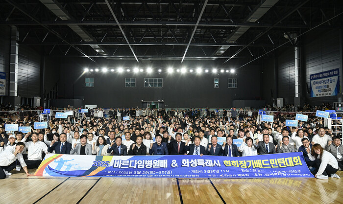 | ▲ 화성특례시의회 화성시 배드민턴 협회장배 및 바르다임병원장배 배드민턴 대회’에 참석해 화성시 체육 활성화를 응원했다(사진은 배드민턴 단체사진) /사진제공=화성특례시의회 |