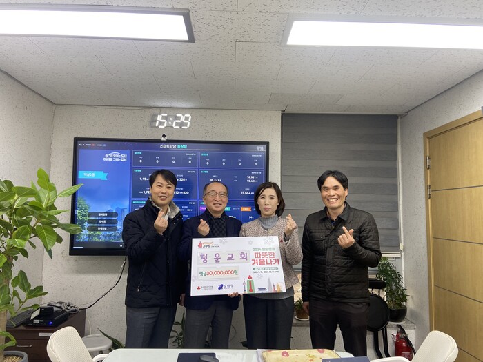 청운교회는 장학금 지원, 연탄 봉사 등 지역사회 내 다양한 봉사와 나눔 활동을 지속적으로 실시하고 있다. 2021년부터 꾸준히 따뜻한 겨울나기 사업에 성금을 기탁해 왔는데, 올해 위기가구를 위해 써달라며 3천만 원을 기부했다. 성금은 코로나19 여파로 구직 등 경제활동에 어려움을 겪고 있는 가구와 의료비 과다 지출로 어려운 다양한 위기가구를 위해 사용할 계획이다.