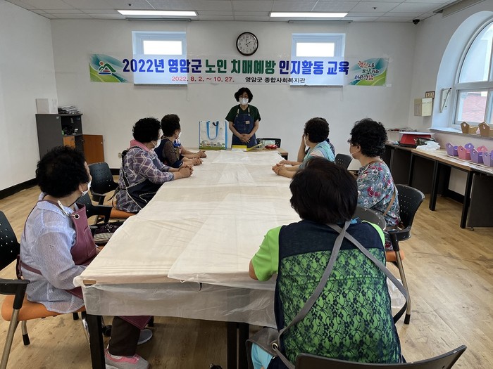 노인 치매예방 인지활동교육는 치매 발병 고위험군을 대상으로 인지, 신체, 사회활동 등 다양한 서비스 제공을 목적으로 하고 있으며, 영암군에서는 8월부터 10월까지 3개월간 종합사회복지관에서 종합공예와 웃음치료 등 2과목을 매주 2회 과정별 26회 운영될 예정이다.