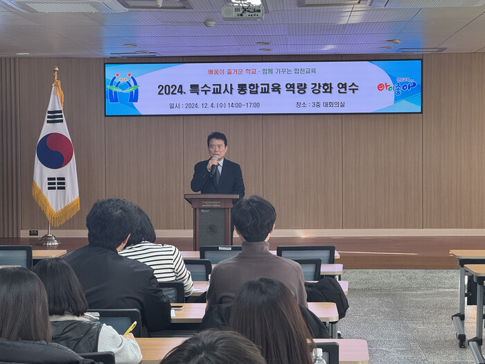김갑진 교육장은 “이번 연수를 통해 장애학생의 도전 행동을 효과적으로 중재할 수 있는 방법을 익히고, 이를 토대로 학생들이 학교생활에 더 잘 적응할 수 있도록 돕는 데 필요한 지식과 기술을 습득하기를 기대합니다. 앞으로도 우리 교육지원청은 선생님들의 통합교육 역량 강화를 위해 지속적으로 노력하겠습니다.”라고 밝혔다.