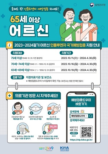 임신부는 10월 5일부터, 75세 이상은 어르신은 10월 11일부터, 70세~74세 어르신은 10월 16일부터, 65세~69세 어르신은 10월 19일부터 무료 접종이 시작된다.