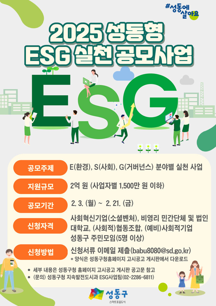 | ▲ ‘2025 성동형 ESG 실천 공모사업’ 홍보물. (사진=성동구청 제공) |