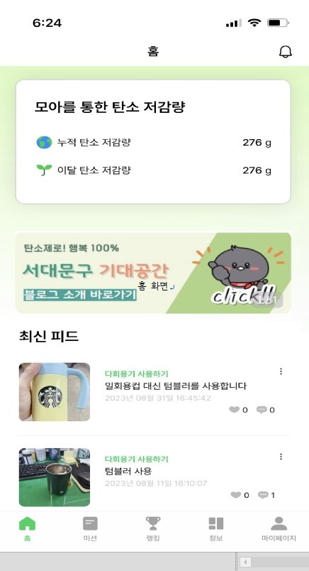 또한 지난 10월 구가 자체 출시한 '기후모아' 앱을 홍보하다. 이 앱에는 텀블러 사용하기, 대중교통 이용하기 등 11개의 탄소중립 실천 미션이 있으며, 이를 완수한 뒤 인증하면 포인트가 쌓인다. 이 포인트로 서대문사랑상품권 또는 봉사활동인증 등의 인센티브를 받을 수 있다.