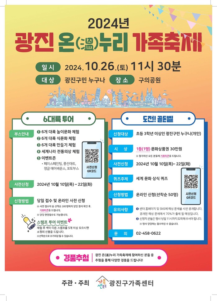 [시민일보 = 여영준 기자] 광진구(구청장 김경호)가 오는 26일 구의공원에서 ‘2024 온누리 가족축제’를 개최한다.