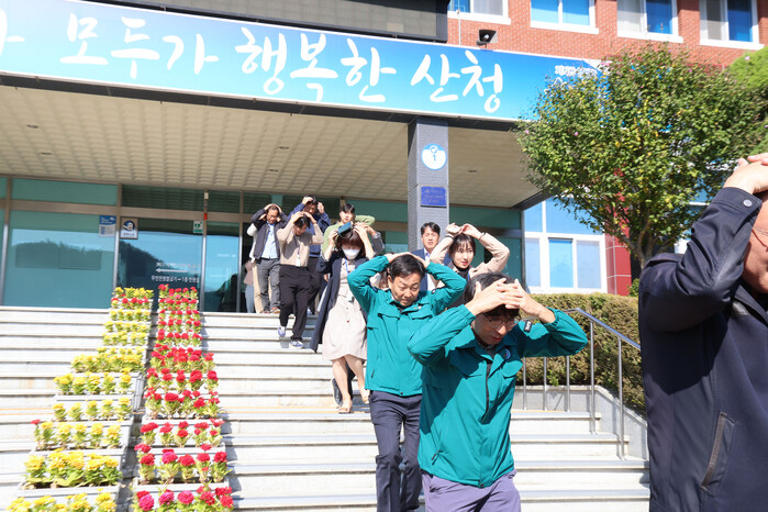 이승화 산청군수(산청군 재난안전대책본부장)는 “지진은 예측이 불가능한 자연재해로 무엇보다도 평상시 행동요령 숙지가 필요하다”며 “지진발생시 재해피해를 최소화할 수 있도록 훈련에 성실히 임할 것”을 주문했다.