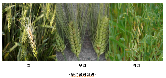 붉은곰팡이병(적미병)은 맥류뿐만 아니라 다양한 볏과 작물에 발생하며, 기상에 따라 피해 정도가 크게 달라진다. 최근 들어 4~5월에 이른 고온과 잦은 강우가 반복되면서 병 피해가 꾸준히 증가하고 있다.