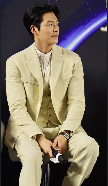 이날 배우 김우빈의 ‘외계+인’의 제작보고회 패션은 세련된 베이지톤의 수트와 함께 ‘예거 르쿨트르’의 클래식한 시계를 포인트로 패션을 완성했다.