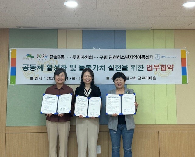협약식에는 윤미경 갈현2동장과 박이순 갈현2동 주민자치회장, 송재화 구립 광현청소년지역아동센터장 등 관계자들이 참석했다. 센터와 마을이 같이 협력해 추진할 수 있는 청소년 활동과 마을공동체 사업 등에 대해 논의하는 시간을 가졌다.