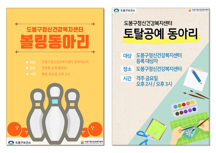 | ▲ 볼링동아리, 토탈공예 동아리 홍보 포스터. (사진제공=도봉구청) |