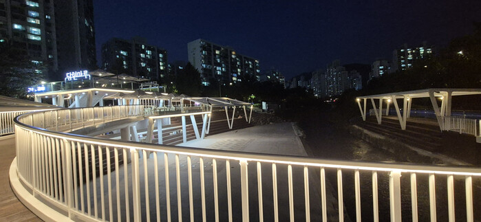 ‘달빛브릿지’는 초승달 형태의 곡선 교량(폭 2.5m, 길이 45.7m)으로, 산책객들이 당현천의 풍경을 다양한 시야로 즐길 수 있도록 설계됐다.