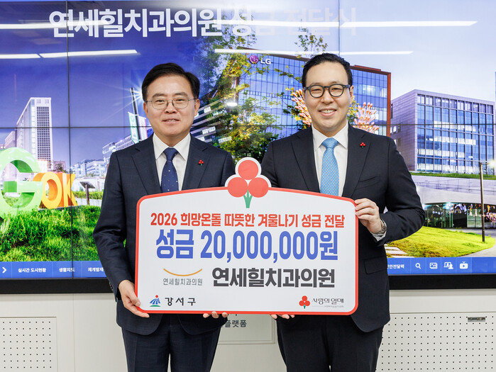 [시민일보 = 박소진 기자] 강서구(구청장 진교훈)는 지난 9일 화곡3동 연세힐치과의원으로부터 이웃돕기 성금 2천만원을 전달받았다.