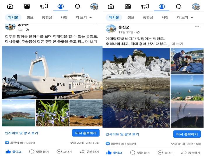 [인천=문찬식 기자] 인천 옹진군(군수 문경복)이 운영하는 SNS 홍보계정인 ‘옹진군 페이스북’이 큰 호응을 얻고 있다. 매주 정기적으로 게재하는 킬러콘텐츠의 공감 횟수가 수백에서 일천 건을 넘기고, 수십 건의 댓글이 달리며 팔로워들로부터 폭발적인 반응을 얻고 있는 것이다.