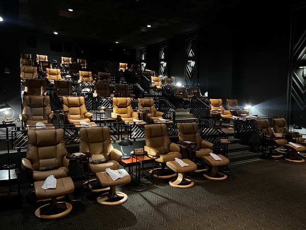 상영관 내 ‘이오스 1인 리클라이너 체어’는 노르웨이의 유명 리클라이너 전문업체인 ‘에코르네스’와 함께 한 제품으로, 수동으로 움직일 때 소음이 적은, 조용한 수동 리클라이너이다.
