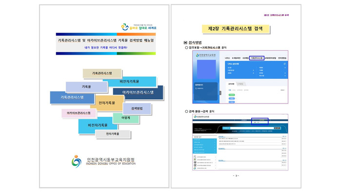[인천=문찬식 기자] 인천동부교육지원청(교육장 김기춘)은 7월 28일 청내 부서 및 관내 기관 전 직원에게 ‘전자·비전자기록물 검색방법 통합매뉴얼’을 배포했다.