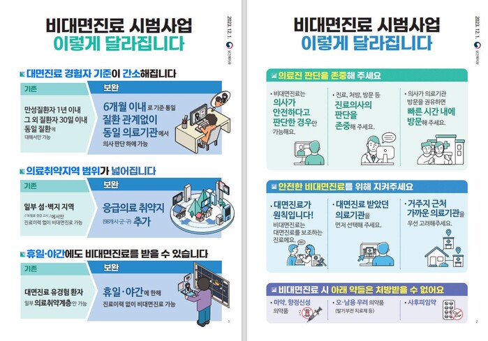 이에 따라 보건복지부에서는 이러한 여론을 수용해 진료 대상 범위를 확대해 의료취약지를 뜻하는「보험료 경감 고시」상 섬‧벽지 지역에 응급의료 취약지(98개 시‧군‧구)를 추가해 ① 의원급 의료기관에서 비대면진료 시 거창군은 초진일 경우에도 예외적으로 진료가 가능하게 됐으며, 휴일·야간 비대면진료 예외적 허용 기준을 기존 18세 미만 소아에서 전체로 확대해 ② 초진에도 의료취약 시간대[공휴일, 평일: 18시~익일 9시, 토요일: 13시~익일 9시]에 진료가 가능해진다.