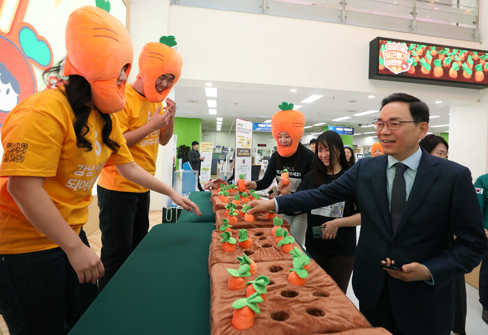 [시민일보 = 이대우 기자] 서울 강남구(구청장 조성명)가 최근 구청 본관 1층 로비에서 당근마켓 강남구청 단골맺기 첫 이벤트를 개최했다.