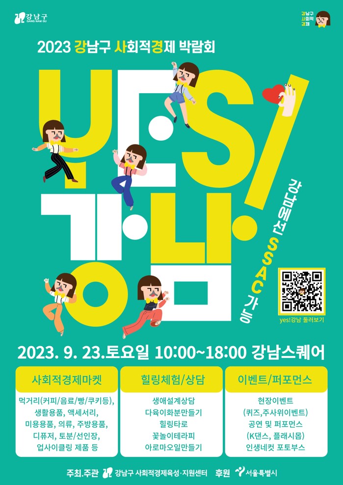 [시민일보 = 이대우 기자] 강남구(구청장 조성명)가 오는 23일 오전 10시~오후 6시 강남스퀘어(강남역 11번 출구 앞)에서 ‘2023 강남구 사회적경제 박람회’를 개최한다.