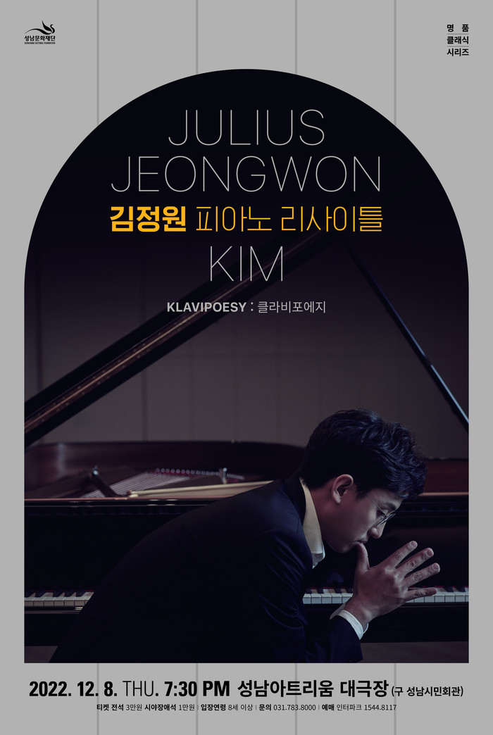 [성남=오왕석 기자] 성남문화재단이 대한민국을 대표하는 중견 피아니스트 김정원의 솔로 리사이틀 <클라비포에지(KLAVIPOESY) : 건반으로 쓰는 시>를 오는 12월 8일(목) 성남아트리움(구 성남시민회관) 대극장에서 개최한다.