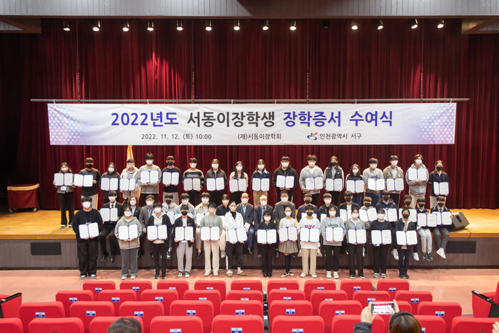 [인천=문찬식 기자] 재단법인 서동이장학회가 최근 인천인재개발원 강당에서 2022년도 서동이장학생에 대한 장학증서 수여식을 개최했다.
