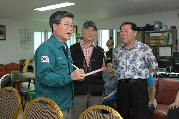 최근 김길성 중구청장이 연일 계속되는 폭염 속 노인들의 건강과 안전을 살피기 위해 다산동에 위치한 다산경로당, 장수경로당, 충현경로당 등 무더위쉼터 3곳을 방문해 현장 점검을 했다. 중구는 경로당 31곳과 복지관 4곳을 어르신 무더위쉼터로 지정해 운영 중이다. 사진은 김 구청장이 경로당을 방문해 시설 점검을 하고 있는 모습. (사진=중구청 제공)