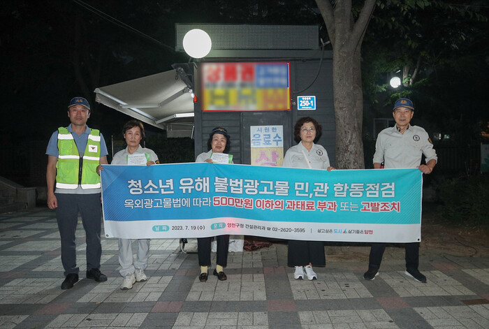 구는 불법광고물이 특히 기승하는 여름휴가철을 맞아 18개 동 직능단체 회원, 공무원, 옥외광고협회 양천지부 회원 등과 협력해 민관합동점검반을 출범하고, 이달 31일까지 대대적인 단속과 올바른 광고물 홍보 캠페인을 펼친다.