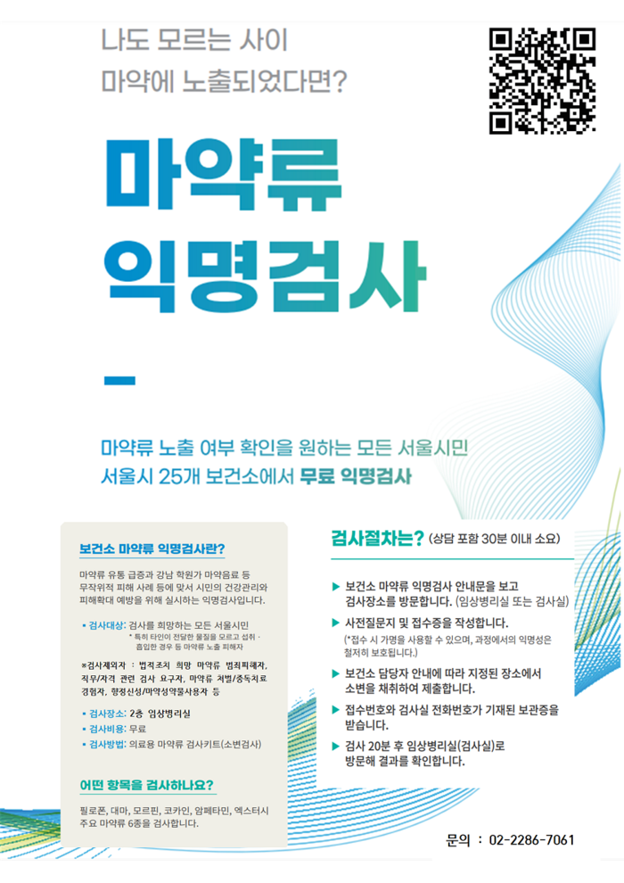 '마약류 익명 검사'는 최근 불거진 강남 학원가 마약 음료 사건과 같은 마약범죄로부터 시민의 안전을 지키기 위해 도입된 정책으로, 검사 대상은 마약류 노출 여부 확인을 원하는 모든 서울 시민이며 비용은 전액 무료이다.