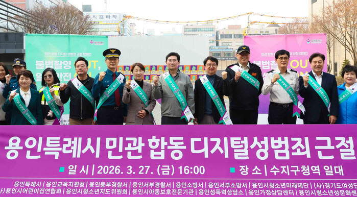 캠페인에는 이상일 시장을 비롯해 조영민 용인교육지원청 교육장, 배영찬 용인동부경찰서장, 오은석 용인서부소방서장 등 주요 기관장이 참석해 디지털 성범죄 예방과 근절을 위한 기관 간 협력 의지를 다졌다.