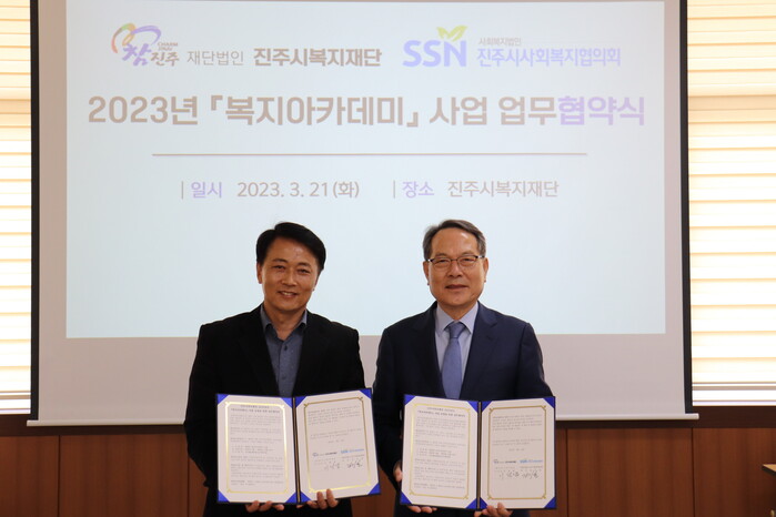 이성갑 재단 이사장은 “복지아카데미 사업은 지역 내 복지서비스 수요자들의 다양한 욕구와 복지환경 변화에 맞닿아 있다”며 “이 협약 체결로 진주시복지재단과 진주시사회복지협의회가 지역사회 복지종사자들과 주민들의 역량강화와 전문성 향상을 위한 여건 마련을 위한 긴밀한 협력관계로 나아가기를 바란다”고 말했다.