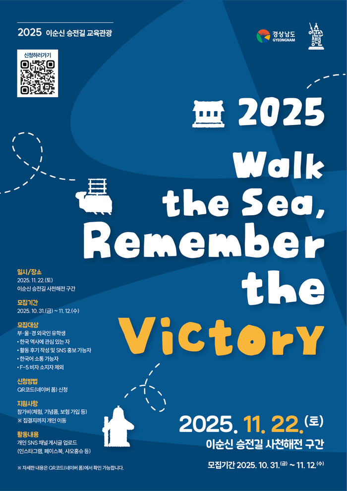참가자들은 거북선이 최초로 출전한 이순신 승전길(사천해전)을 따라 걸으며 조선 수군의 역사와 이순신 장군의 해전 이야기를 직접 체험하게 된다.