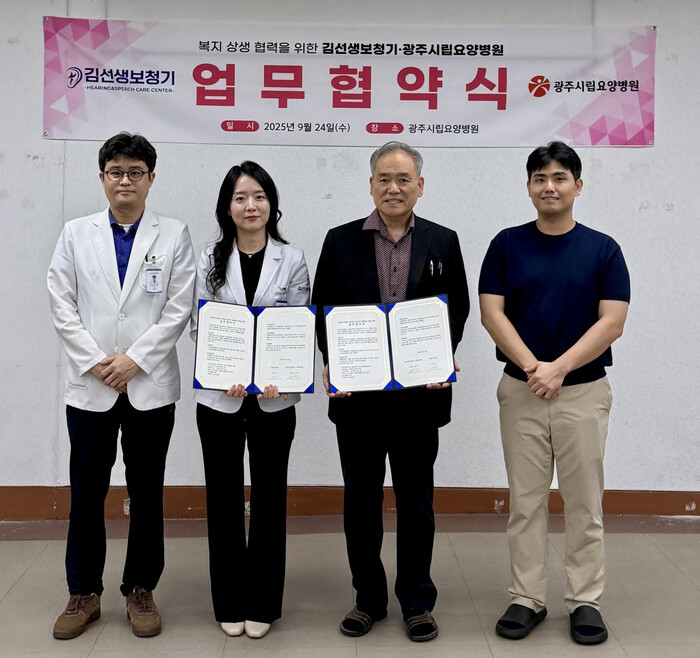 김선생보청기 대표원장은 “광주시립요양병원과의 협약을 통해 직원 및 가족들의 청력 건강에 도움을 줄 수 있어 기쁘다. 직원들과 직계가족 중 청력 저하 및 난청, 이명으로 불편함을 겪으시는 분들을 위해 아낌없는 지원을 할 예정”이라고 말했다. 이어 “요양병원에 종사하며 많은 환자분을 돌보시지만, 막상 본인의 건강 상태를 들여다보고 돌보는 데에는 소홀한 경우가 많다. 특히 청력은 저하된 후에는 회복이 어렵기 때문에 더 세심하게 관리해야 한다. 정기적인 청력검사가 핵심이며, 청력에 조금이라도 이상 증세가 생긴다면 방치하지 말고 빠른 검사를 받아보시길 추천드린다”라고 설명했다.