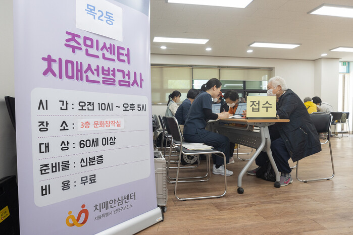 | ▲ 목2동 주민센터에서 진행된 ‘찾아가는 치매 선별검진’ 인지선별검사(CIST) 실시 모습. (사진=양천구청 제공) |