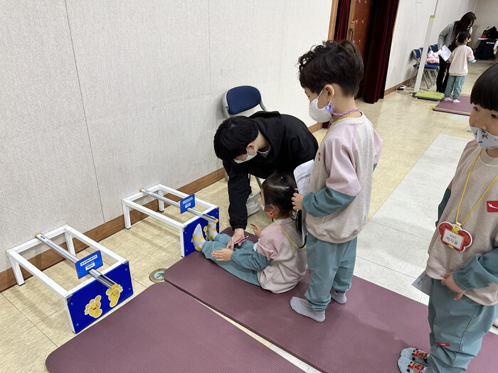 | ▲ ‘성동체력인증센터’에서 영유아를 대상으로 체력측정을 하는 모습. (사진=성동구청 제공) |