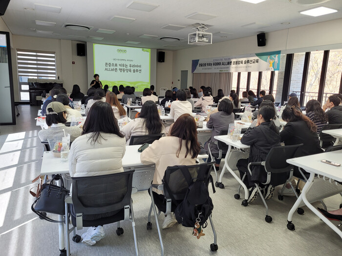 [용인=오왕석 기자] 용인특례시(시장 이상일)는 8일 마을공동체지원센터 다목적실에서 공공형어린이집 학부모들이 참여한 가운데 한국아동교육계발원 원장인 박근주 교수의 강의로 ‘존중으로 키우는 우리아이 ALL바른 행복양육 솔루션’ 교육을 진행했다고 9일 밝혔다.