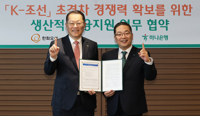 하나은행에 따르면 이번 협약은 한화오션과의 상호 협력을 통해 국가 전략산업인 조선업의 초격차 경쟁력 확보를 지원하고, 생산적 부문으로의 자금 공급을 강화하기 위해 마련됐다.