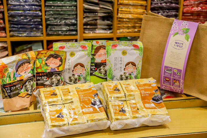 쥬트백 선물세트는 불고기 맛 도시락김과 오리지널, 와사비, 아몬드, 불고기 맛의 김자반으로 구성됐다.