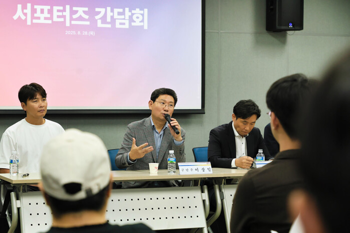 이 시장은 “내년 K리그2 진출을 앞두고 준비를 잘 하고 있는데 서포터즈 여러분들이 구단 운영 등과 관련해 좋은 제안을 많이 해주시기 바란다”고 했다.