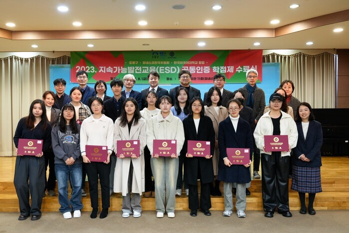 [시민일보 = 여영준 기자] 서울 도봉구(구청장 오언석)는 최근 유네스코한국위원회 11층 유네스코홀에서 유네스코한국위원회, 한국외국어대학교와 공동으로 '지속가능발전교육(ESD) 공동인증 학점제' 수료식을 개최했다고 12일 밝혔다.