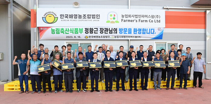 정황근 장관은 수출 선과장과 인근 배 과수원을 둘러보고 수출 농가의 노고를 격려하며 “세계 시장에서 한국배는 맛과 우수한 품질로 인정받고 있다”고 전하며 “어려운 여건 속에서도 의지와 희망을 갖고 지속적인 수출 성과를 내며 국내 시장의 가격안정뿐만 아니라 우리 농업의 희망과 활력을 불어 넣는 큰 역할을 해온 수출농가에 감사드린다. 대한민국 농식품이 세계시장을 누빌 수 있도록 앞으로도 최선을 다해 지원할 것이다”고 말했다.